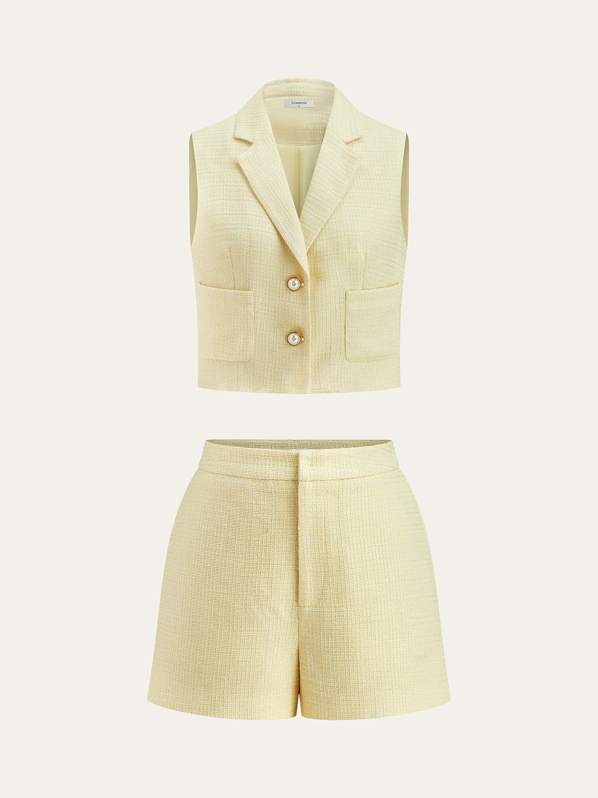 Pearl Button Tweed Vest and Shorts Set
