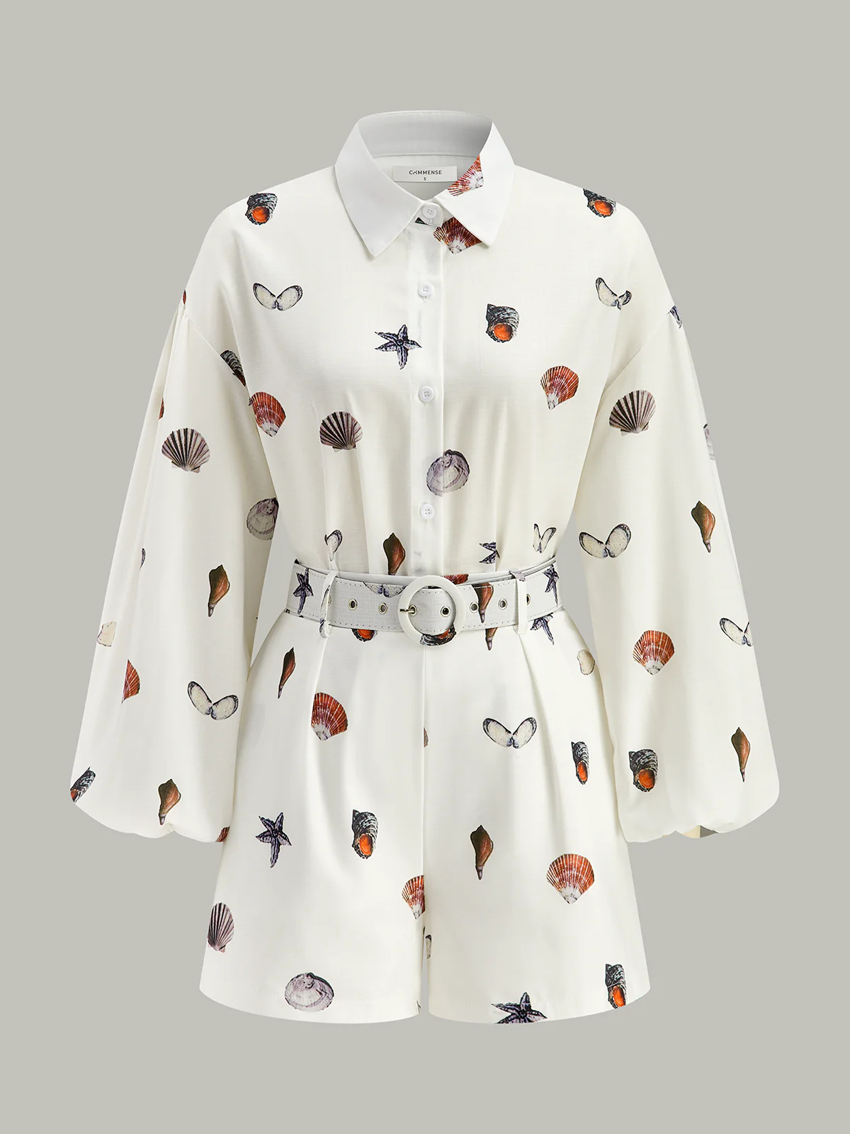 Belted Seashell Print Shorts Set