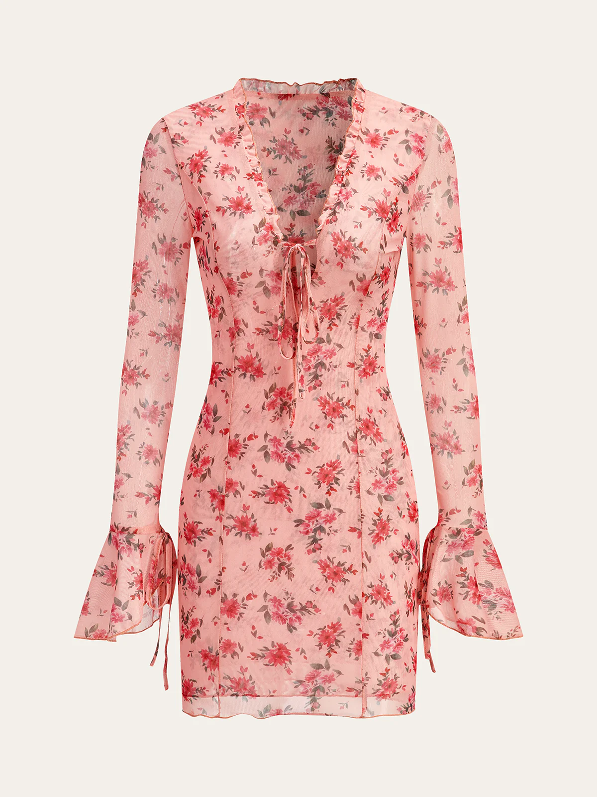 Semi-Sheer Printed Deep V Dress