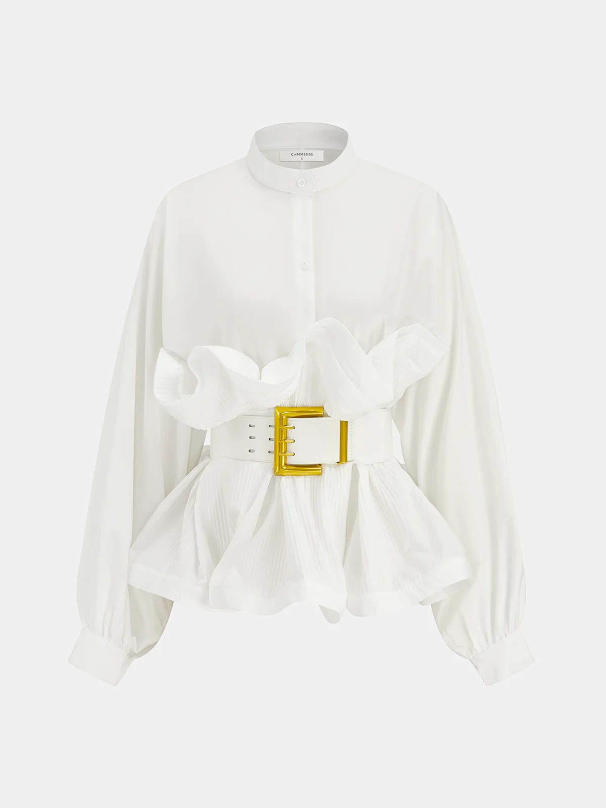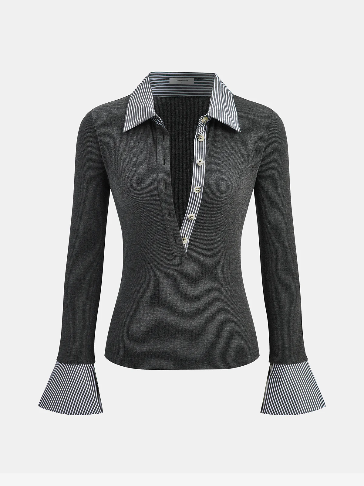 Stand Collar Asymmetric Button Ribbed Knit Top