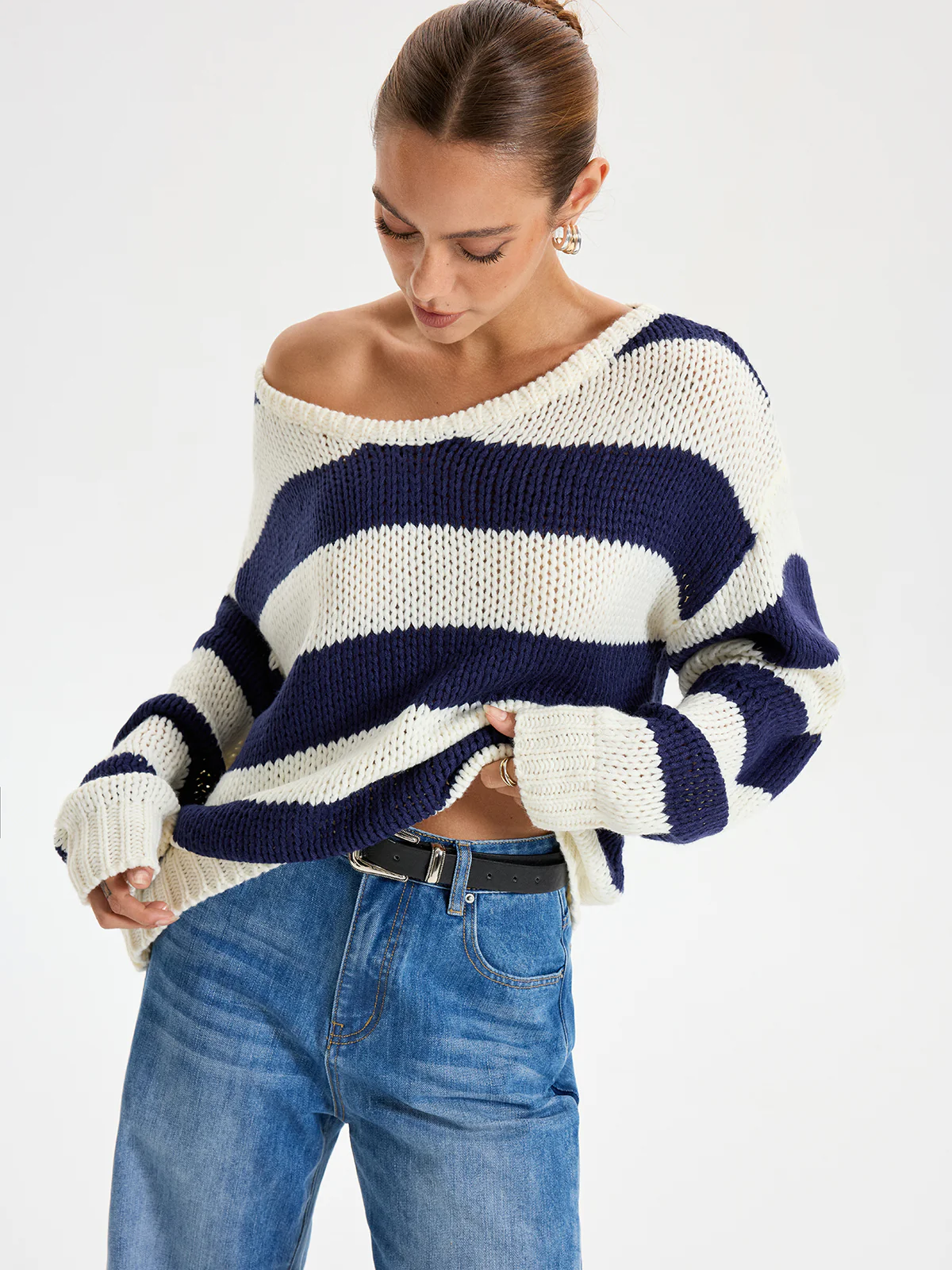 Leg-Of-Mutton Sleeve Panel Cable-Knit Sweater